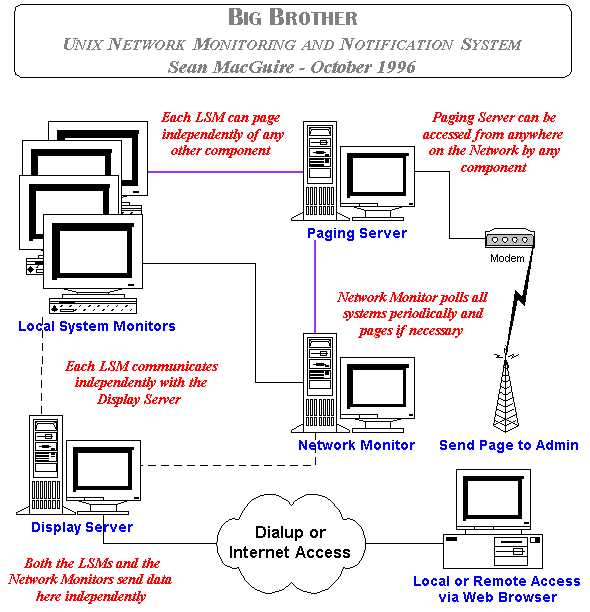 Big Brother is a simple, effective solution to the Systems Monitoring problem, and is presented here for your comments and suggestions.
